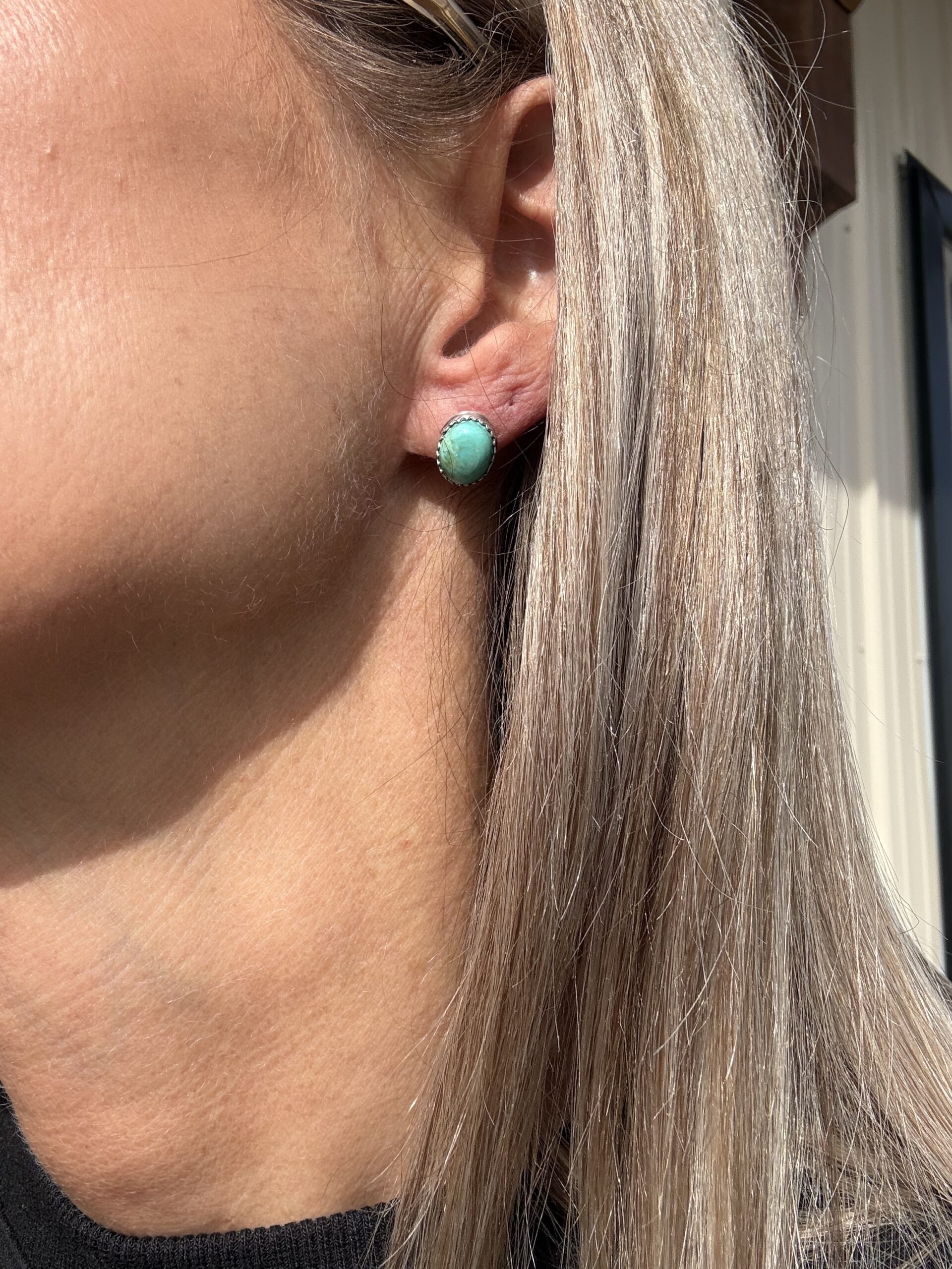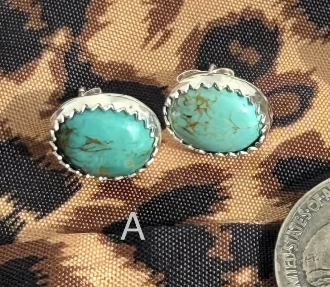 Discover the timeless beauty of the Southwest with these handcrafted Kingman Turquoise stud earrings. Set in genuine .925 sterling silver, these oval cabochons feature vibrant sky-blue hues with classic brown matrix patterns unique to each stone.